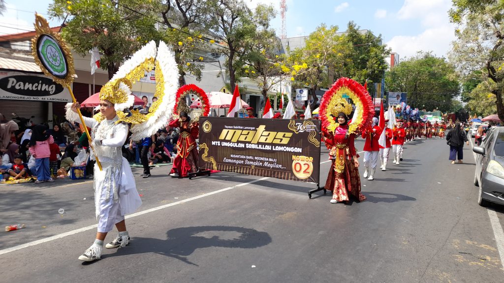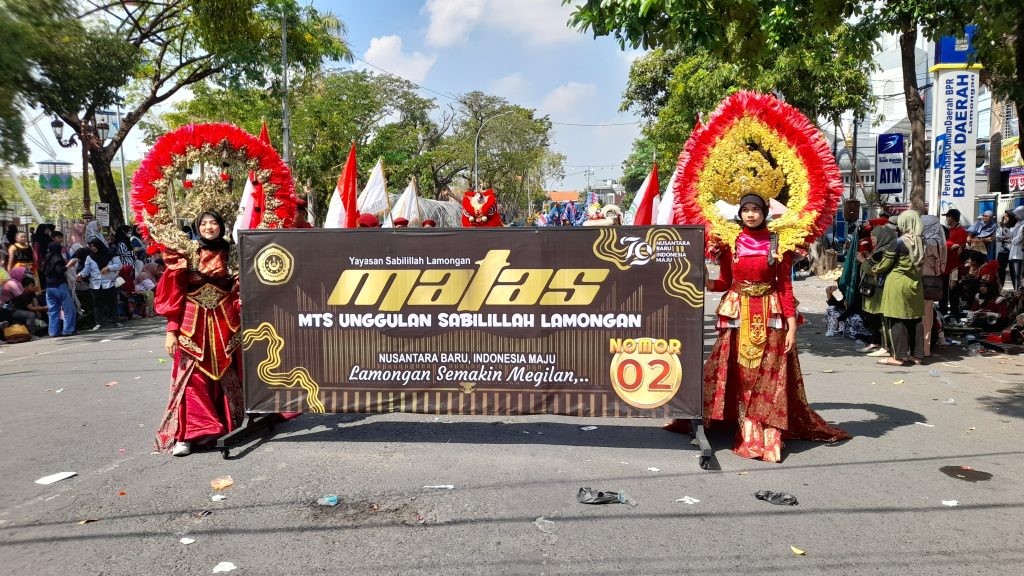 Lamongan, 24 Agustus 2024 – MTs Unggulan Sabilillah Lamongan turut memeriahkan Meg Karnaval 2024 yang diselenggarakan oleh Pemerintah Kabupaten Lamongan dalam rangka memperingati Hari Ulang Tahun ke-79 Republik Indonesia. Dengan tema “Nusantara Baru, Indonesia Maju, Lamongan Semakin Megilan,” acara ini berlangsung dengan penuh semangat nasionalisme dan kebersamaan.