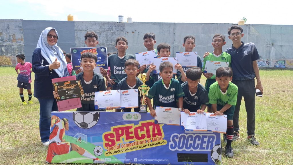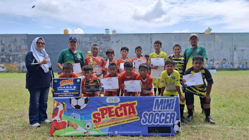 Lamongan – (19/4) MTs Unggulan Sabilillah Lamongan kembali menunjukkan komitmennya dalam pengembangan bakat dan minat siswa melalui gelaran SPECTA (Special Competition of MATAS) Tahun 2025. Kegiatan ini berupa turnamen mini soccer tingkat SD/MI se-Kabupaten Lamongan yang berlangsung meriah dan kompetitif di lapangan utama Yayasan Sabilillah, tanggal 19 April 2025.