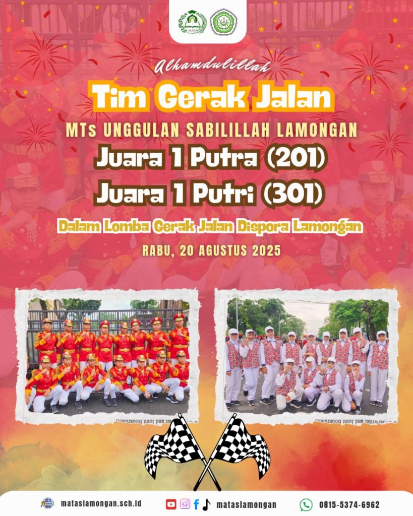 Juara 1 Gerak Jalan Putra tingkat SMP/MTs DISPORA Kab. Lamongan 2025